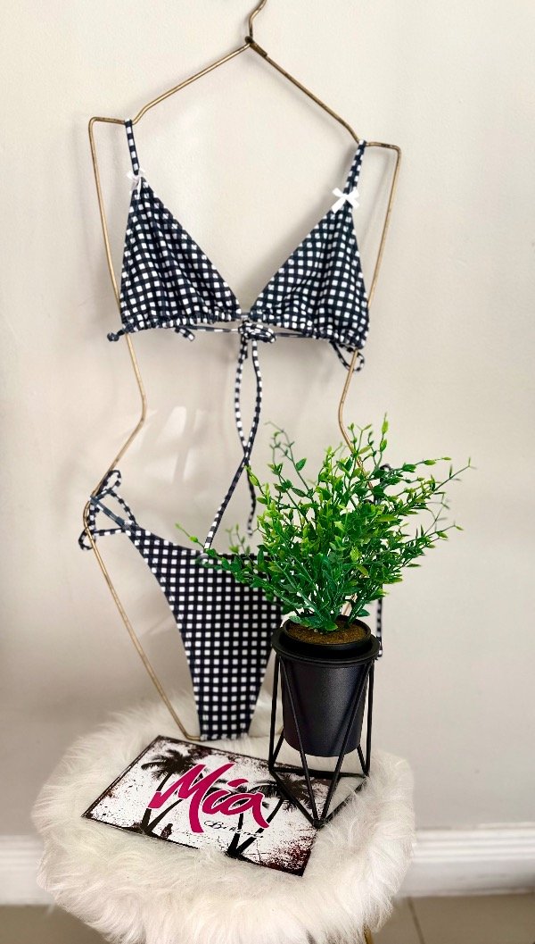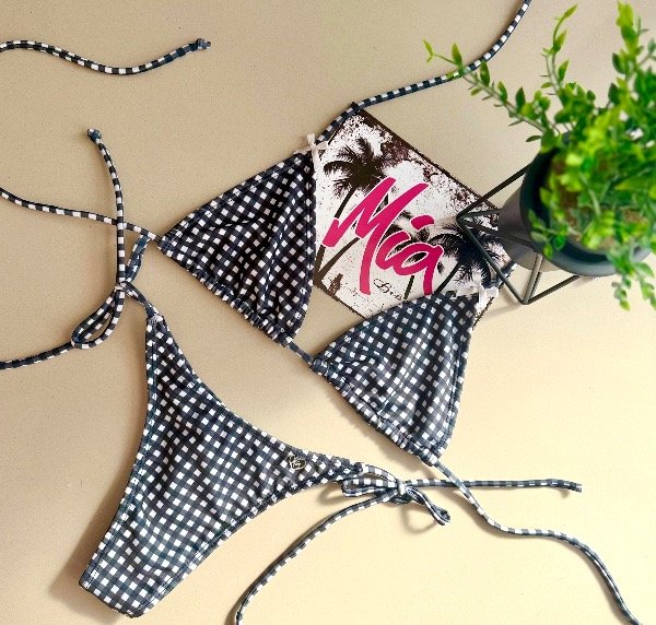 Confeccionada en lycra tricot con diseño cuadrillé, la Bikini Capri combina encanto y estilo.
