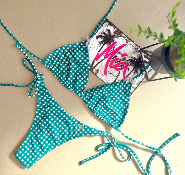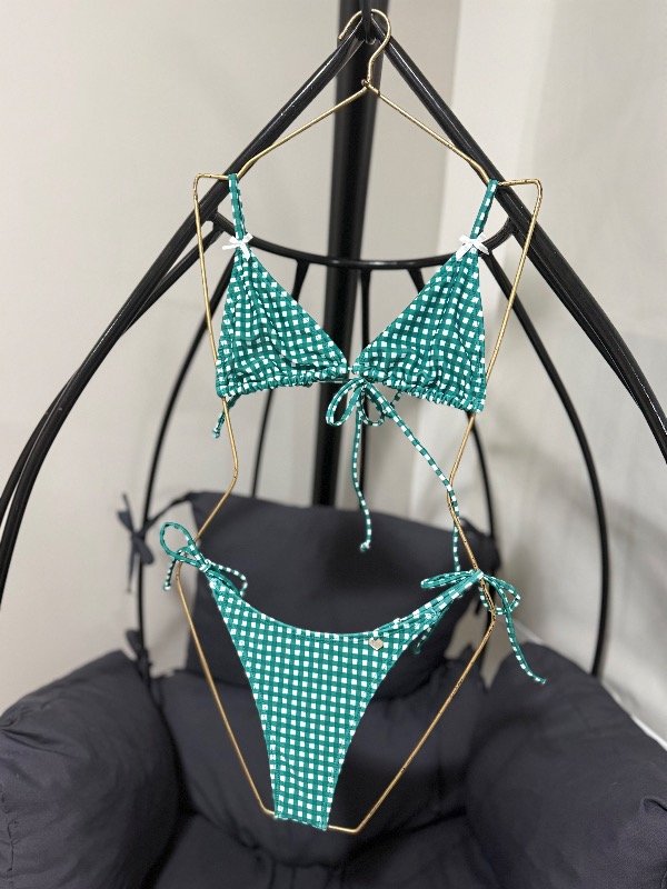 Confeccionada en lycra tricot con diseño cuadrillé, la Bikini Capri combina encanto y estilo.
